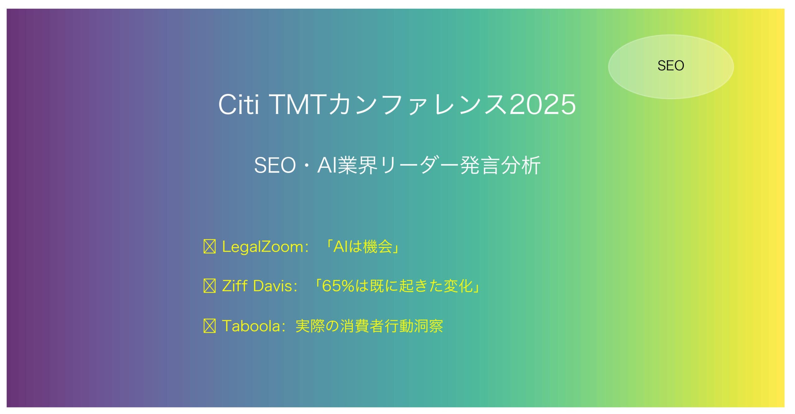 Citi TMTカンファレンスでの業界リーダーの発言を統合し、実践的な次世代SEO戦略フレームワークを提案します。