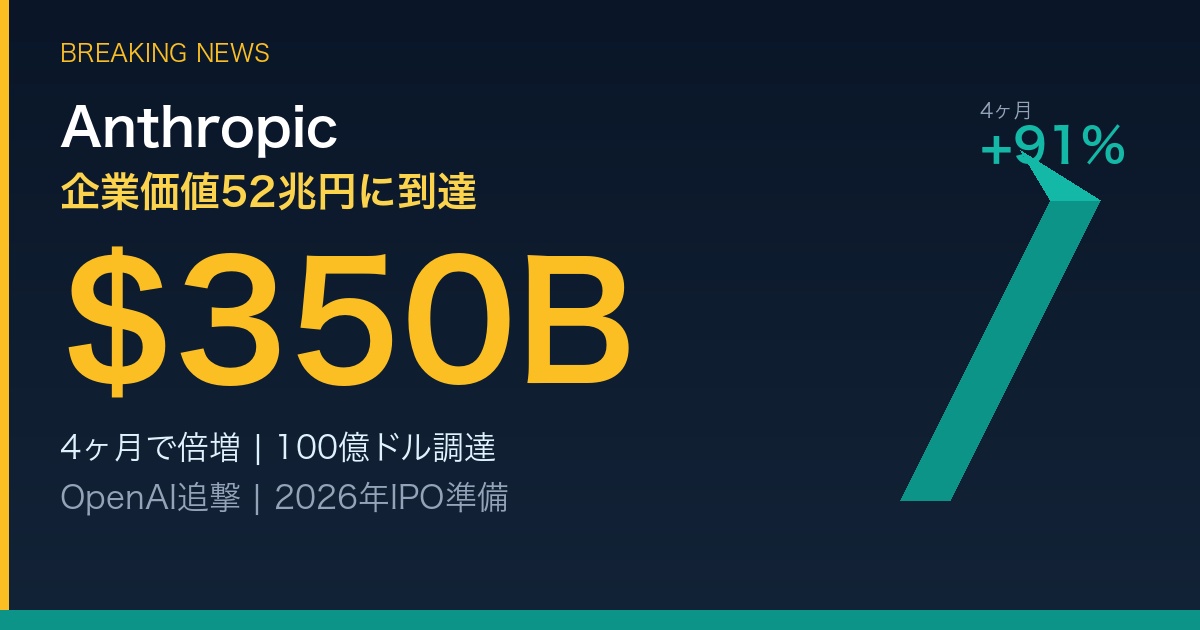 Anthropicの企業価値52兆円到達は、単なる一企業のニュースではない。AI技術がもたらす経済的価値に対する市場の評価を象徴する出来事だ。