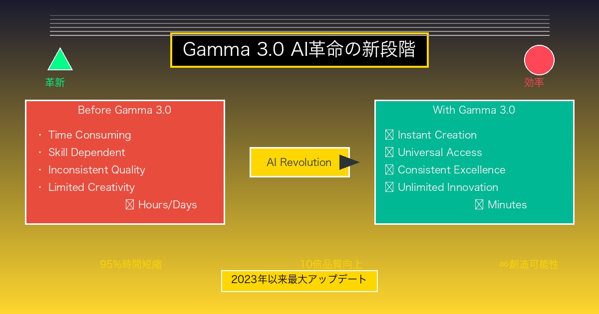 本記事では、Gamma 3.0の革新的機能から具体的な活用方法、そして生活のあらゆる領域に及ぶその影響力まで、この歴史的アップデートの全貌を詳しく解説します。