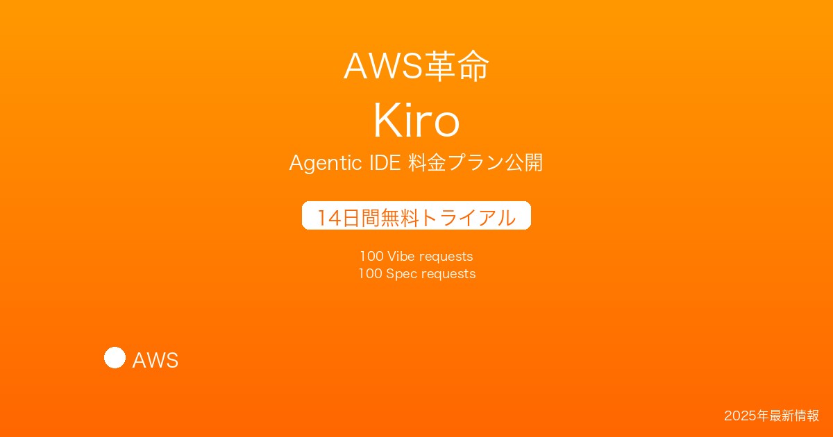 AWS が2025年8月15日に発表した待望の料金プランにより、革新的なAI エディタ「Kiro」が遂に本格始動しました。従来のIDEの概念を根底から覆す「Agentic IDE」として設計されたKiroは、開発者の作業方式を変革する可能性を秘めています。