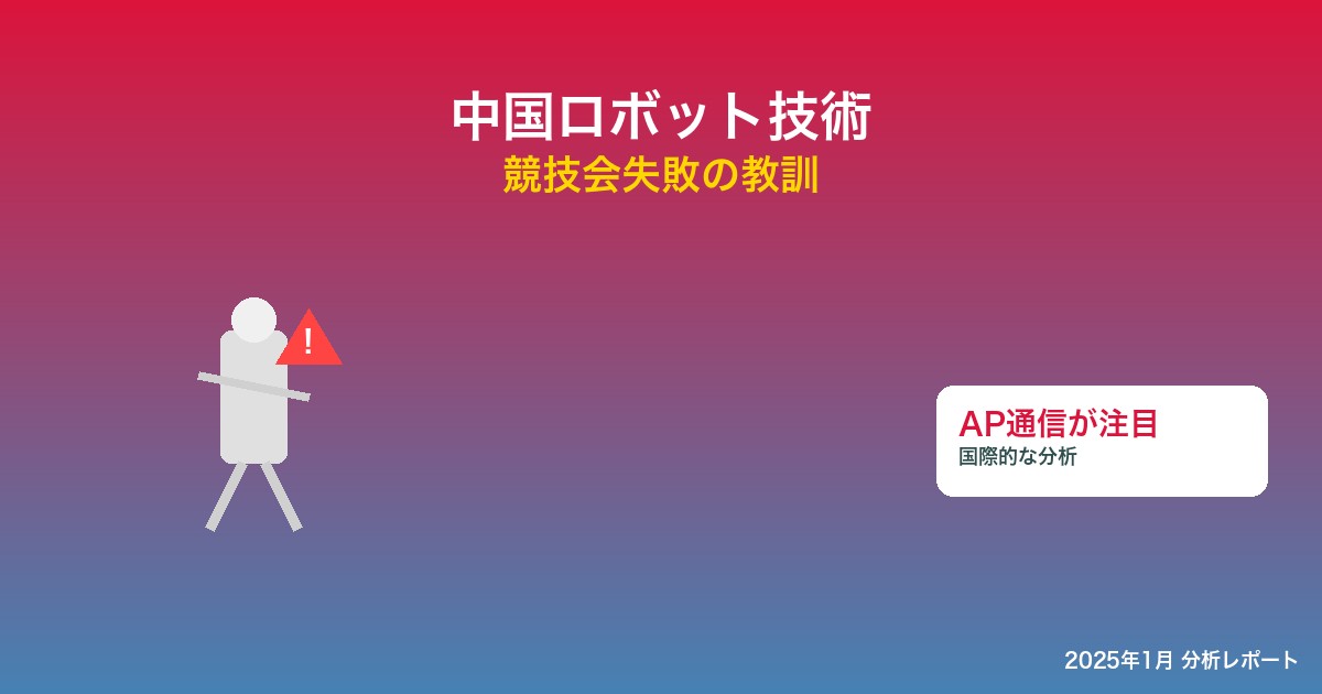 中国初のヒューマノイドロボット競技会で発生した「小さな失敗」は、実際には大きな学習機会として捉えることができます。AP通信による詳細な報道は、この出来事の重要性を国際的に認識させる役割を果たしました。
