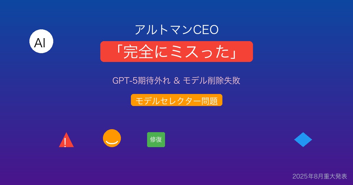 OpenAIのCEOサム・アルトマンが記者団との会話で、GPT-5のリリースに関する重要な発言を行いました。「博士レベル」の能力を謳うGPT-5に対するユーザーの期待外れの反応と、OpenAIが「完全にミスった」と認めた古いモデルの突然の削除問題について、業界に衝撃を与える内容となっています。