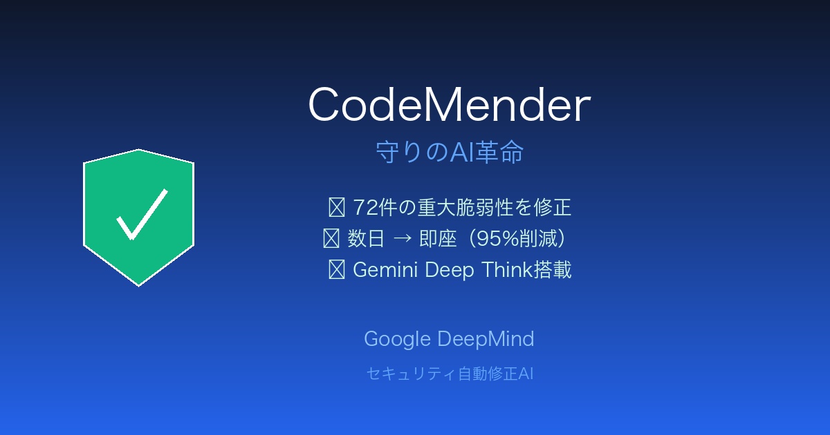 【Google DeepMind革命】CodeMender:72件の重大脆弱性を自動修正したセキュリティAI──Gemini Deep Thinkが守りの最前線を変える