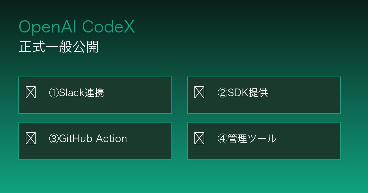 ②Codex SDK:あらゆるアプリにAI開発者を組み込める革命