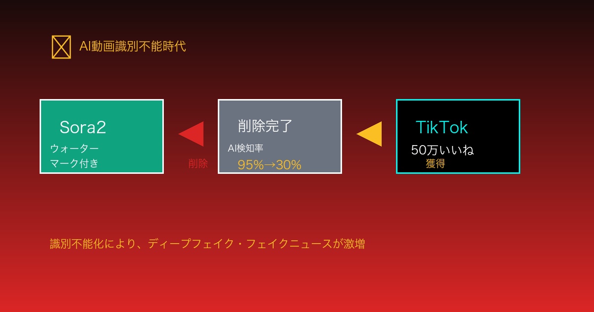 - プラットフォーム対策の限界:ウォーターマーク削除後の検知は極めて困難