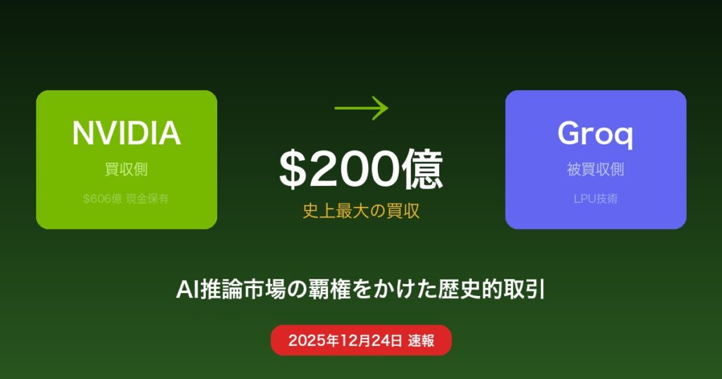 【速報】NvidiaがGroqを約200億ドルで買収—史上最大の取引でAI推論市場を支配へ