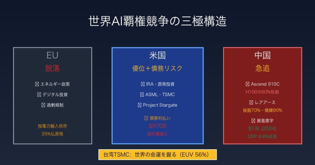【米中AI覇権戦争】EUは脱落、米国債利払いが国防費超え、中国レアアース禁輸で半導体生産停止リスク──台湾TSMCが握る世界の命運