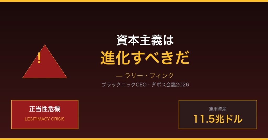 世界最大の資産運用会社ブラックロックのCEOラリー・フィンクが、ダボス会議で資本主義の正当性危機を警告。AIが格差を拡大させる懸念と、資本主義の進化の必要性を訴えた。