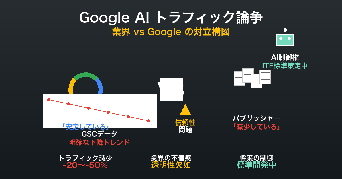 Google AIのトラフィック影響論争とパブリッシャーのAI制御権|業界の不信感が高まる理由