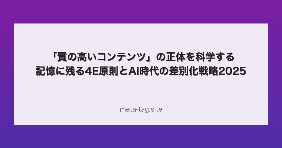 「質の高いコンテンツ」の正体を科学する|記憶に残る4E原則とAI時代の差別化戦略2025