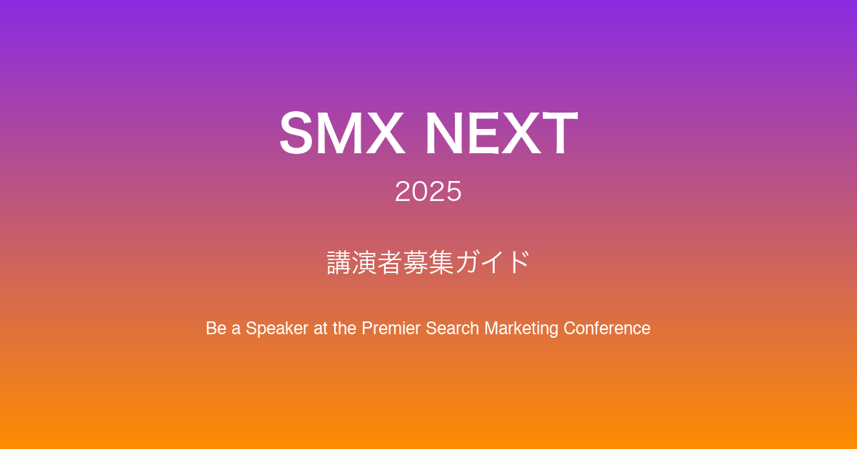 2025年11月18日〜19日にオンラインで開催されるSMX Next 2025の講演者募集が始まりました。世界最大級のサーチマーケティングカンファレンスであるSMXシリーズの中でも、次世代のマーケティング戦略に焦点を当てたSMX Nextは、業界の最新トレンドや革新的なアイデアを共有する絶好の機会です。