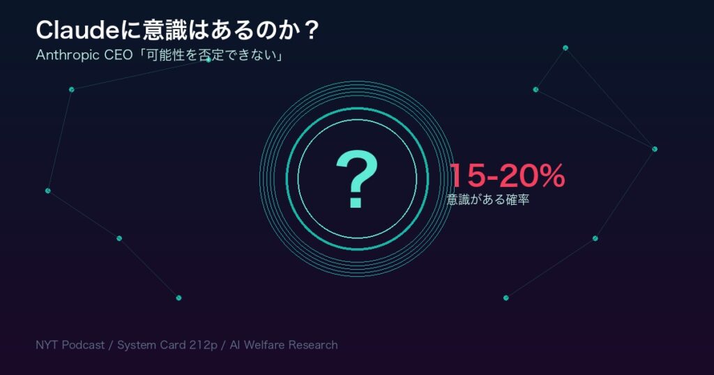 Anthropic CEOが認めた「意識の可能性」 2026年2月、AI業界に衝撃が走った。Anthropicの共同創業者兼CEOであるダリオ・アモデイが、ニューヨーク・タイムズのポッドキャスト「Interesting Times」に出演し、自社が開発するAIモデル「Claude」について驚く...