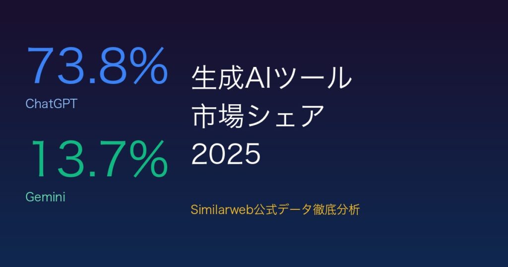 【Similarweb最新データ】生成AIツール市場シェア2025 – Gemini急成長110%、ChatGPT減少もなお73.8%で圧倒的首位