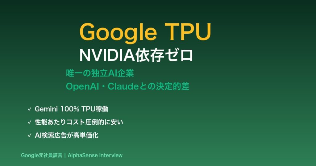 Google元社員が暴露:TPU戦略でNVIDIA依存脱却、AI検索広告が高単価化する未来