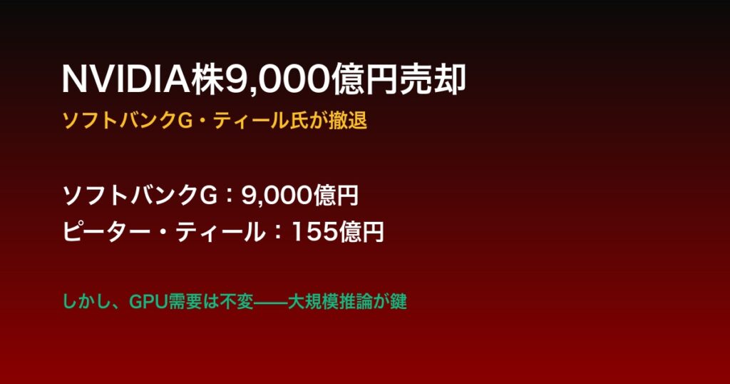 NVIDIA株9,000億円売却の衝撃:ソフトバンクG・ティール氏が決算前に撤退も、GPU需要は不変の理由
