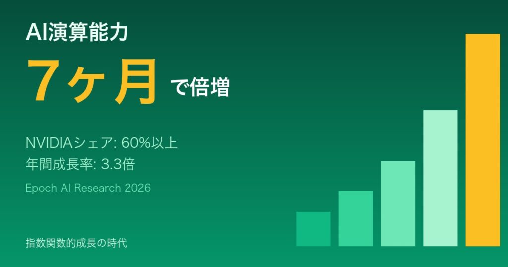 【衝撃】AI演算能力、7ヶ月で倍増|NVIDIAが60%シェア・年間3.3倍の指数関数的成長