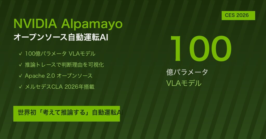 【NVIDIA Alpamayo】オープンソース自動運転AI発表|100億パラメータVLAモデル・メルセデスCLAに搭載