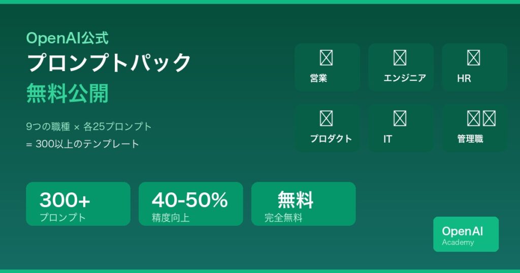 【無料公開】OpenAIが職種別プロンプトパックをリリース – 営業・エンジニア・HR・管理職向け300以上のテンプレート