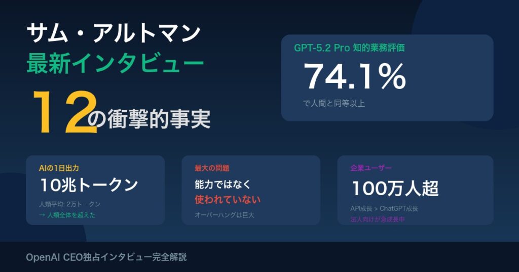 【独占】サム・アルトマン最新インタビュー12の衝撃—GPT-5.2は知的業務の74%で人間超え