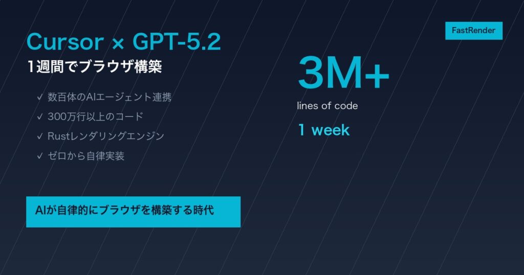 【衝撃】Cursor CEO、数百体のGPT-5.2エージェントで1週間でブラウザを自律構築|300万行・Rustレンダリングエンジン