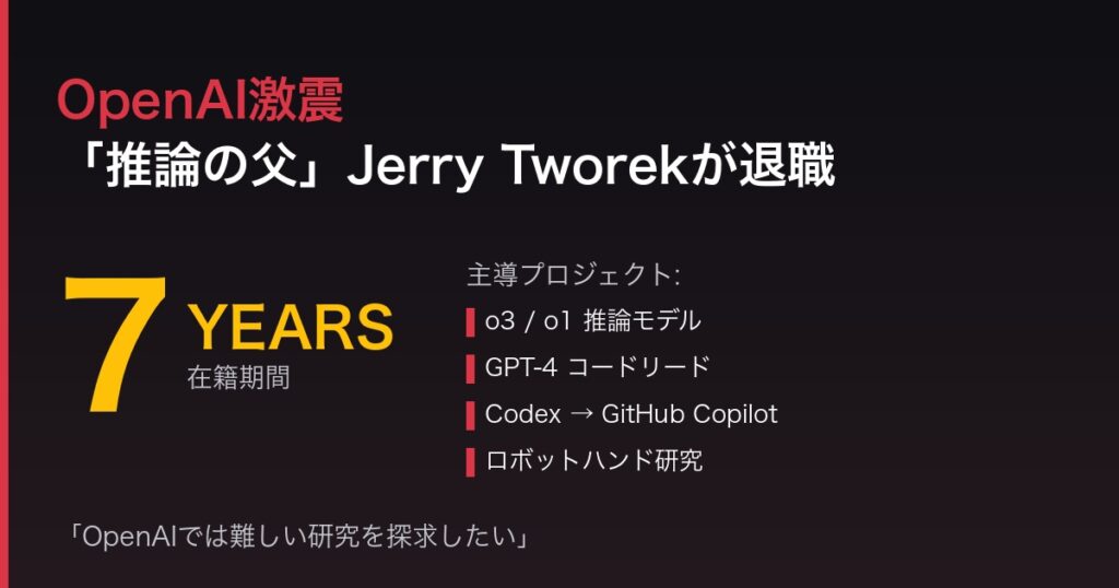 【OpenAI激震】Jerry Tworek退職|o3・o1・GPT-4を生んだ「推論の父」が7年で去る理由