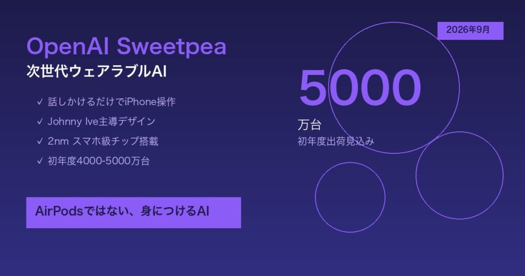 【OpenAI Sweetpea】次世代ウェアラブルAI発表|話しかけるだけでiPhone操作・AirPods代替の新カテゴリ