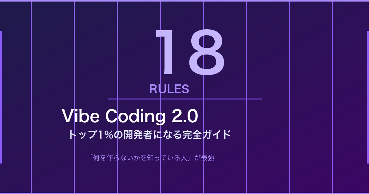このルールの核心は明快だ。「最強のバイブコーダーは、コーディングが上手い人ではなく、何を作らないかを知っている人」。本記事では、この18のルールを日本の個人開発者向けに完全解説する。